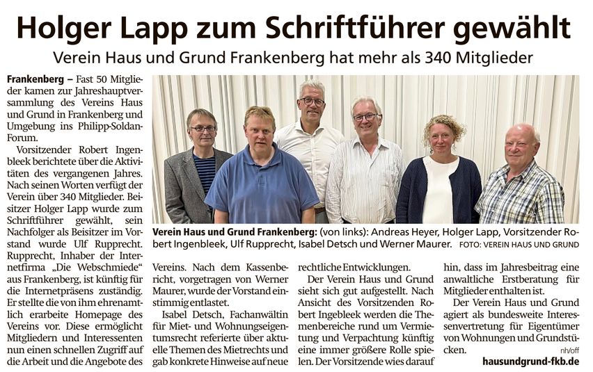 HNA Bericht - Holger Lapp zum Schriftführer gewählt
