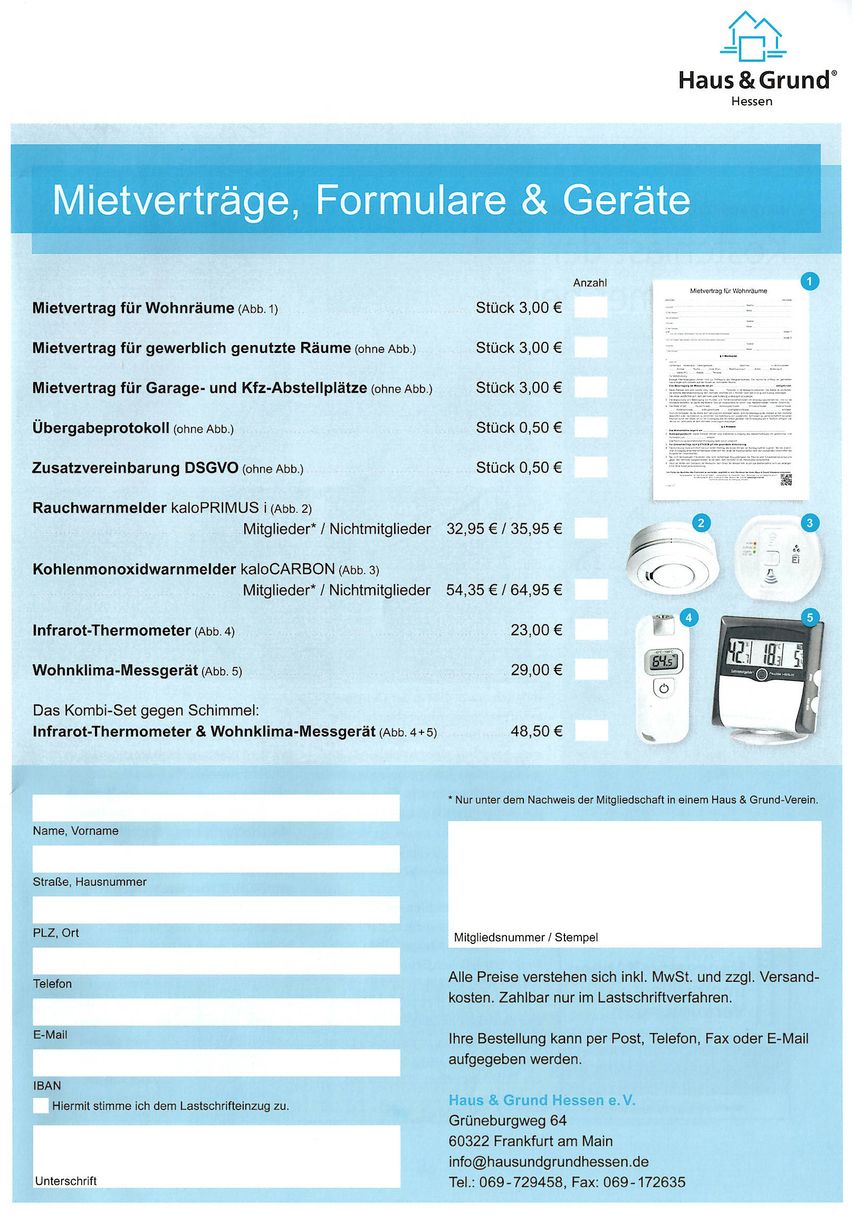 Bestellung: Mietverträge, Formulare & Gerätet - kann hier als PDF angezeigt und ausgedruckt werden:
